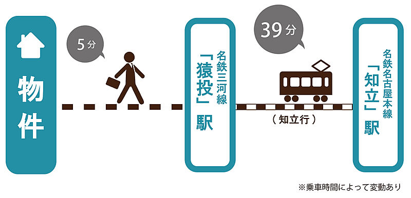 名鉄三河線「猿投」駅 徒歩5分 名鉄三河線「平戸橋」駅 徒歩19分 愛知環状鉄道「四郷」駅 徒歩25分 |