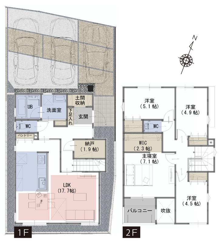 WIC、納戸、土間収納など生活スタイルに合わせて住空間を確保