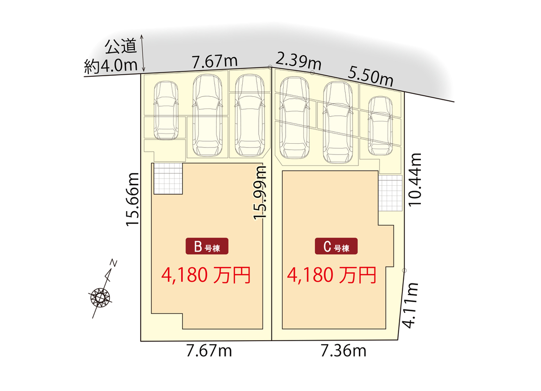 | 駐車場 | 3台 | 道路の幅員 | 北側公道幅員約4.0m |