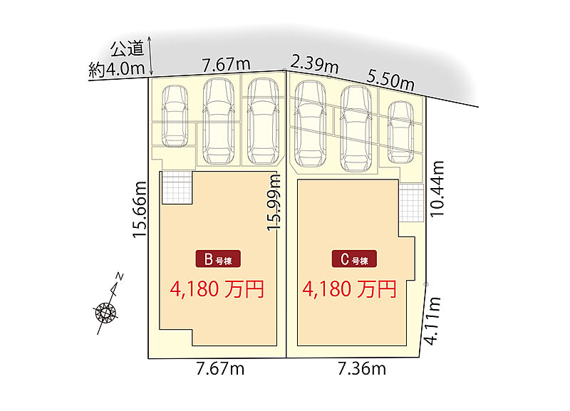 | 駐車場 | 3台 | 道路の幅員 | 北側公道幅員約4.0m |