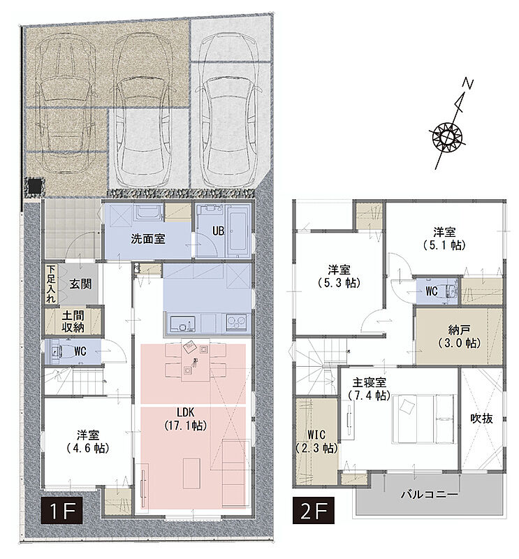 WIC、納戸、土間収納など生活スタイルに合わせて住空間を確保