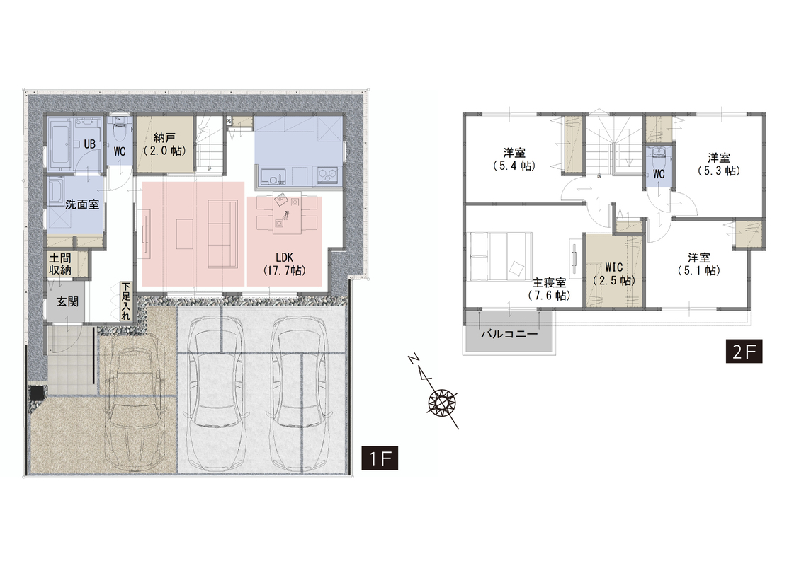 | 間取り | 4LDK+WIC+土間収納+納戸 | 建物構造 | 木造2階建て |