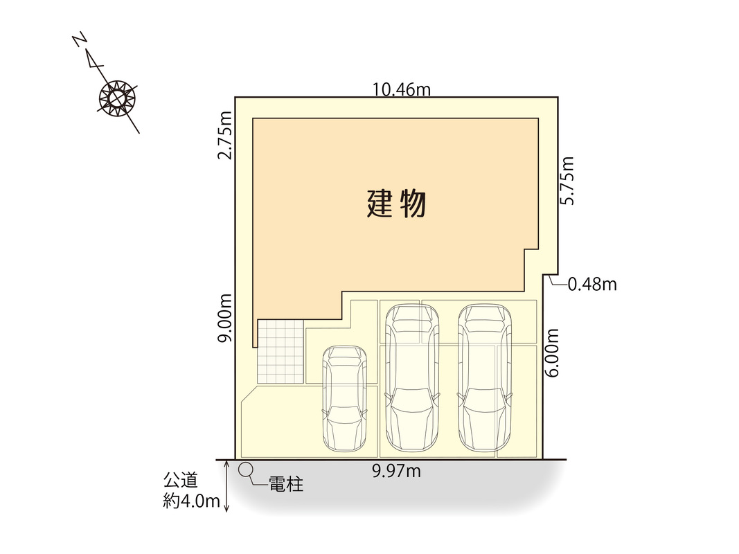 | 駐車場 | 2台 ~ 3台 | 道路の幅員 | 南西側4.0m |