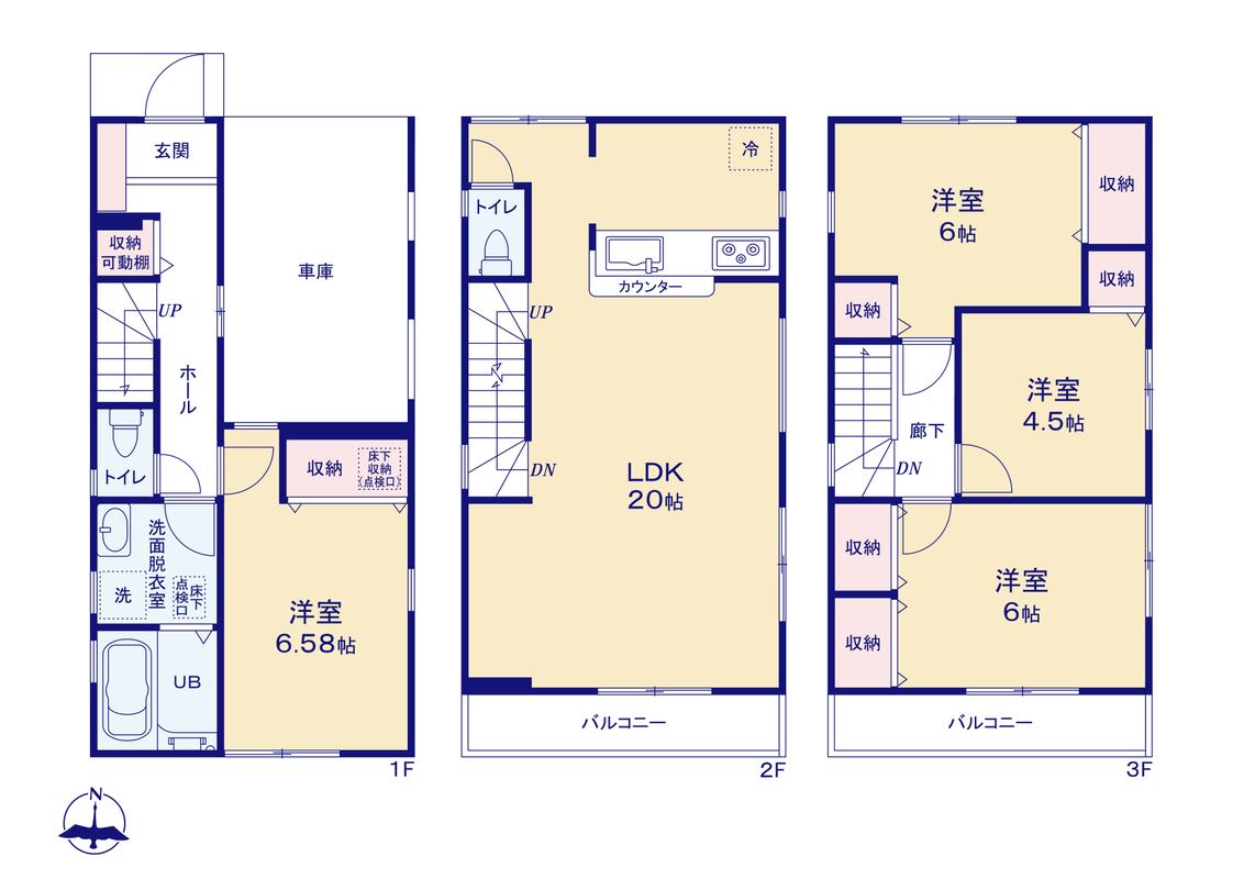 - ※完成予想図やCG合成画像は、門塀・植栽・庭・外観等、実際とは多少異なる場合があります。