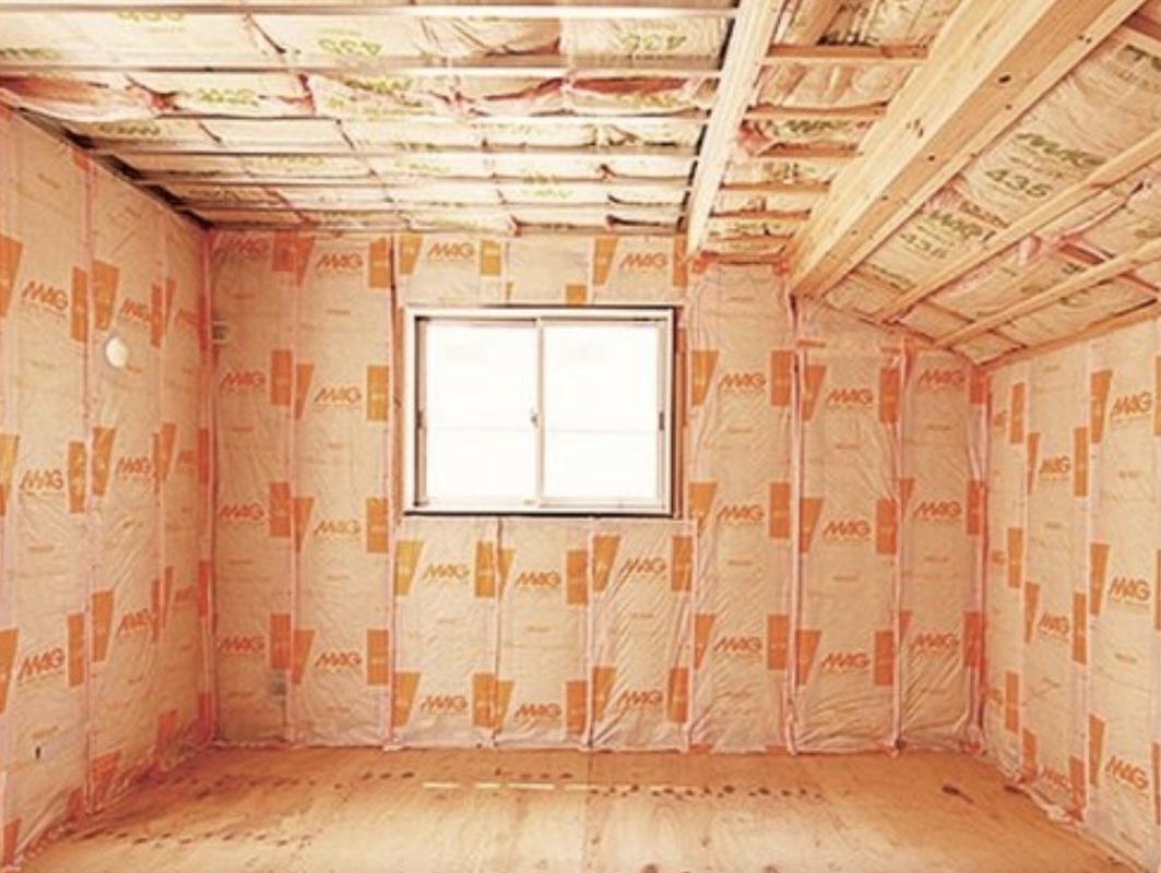 マイスターが貼るグラスウール断熱材