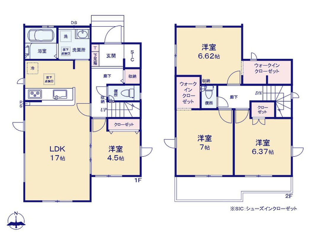 ○●本日、ご見学可能です!●○完成しておりますので、実際のお部屋をしっかりご覧いただけます♪カースペースは並列2台分、広々としたお庭付き!SICやWICなど大型収納スペースも充実でお片付けもラクラク♪