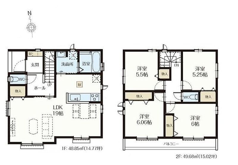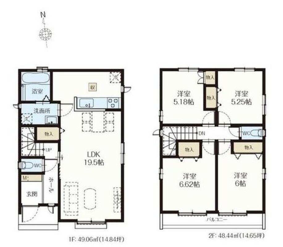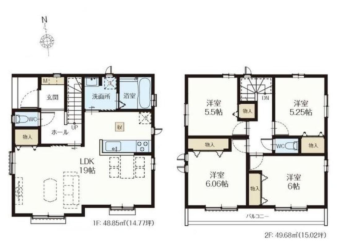 - 97.5m2・98.53m2(29.49坪・29.80坪)