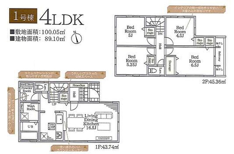 | 建物面積 | 89.1m2~96.39m2 | 土地面積 | 100.05m2~137.5m2 |