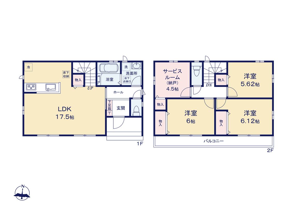 F号棟 間取り 3LDK+S 価格 4090万円 建物面積 93.98m2 土地面積 123.3m2 -