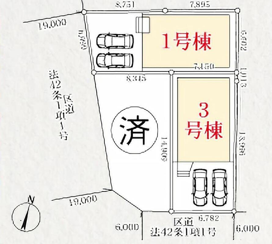 | 建物面積 | 97.2m2・99.22m2 | 土地面積 | 104.2m2・106.04m2 |
