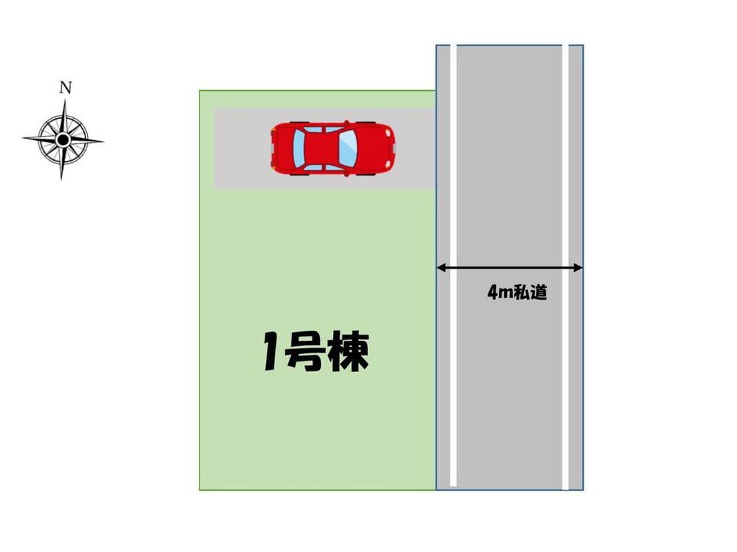 | 駐車場 | 1台 | 道路の幅員 | 道路幅:4m、アスファルト舗装、東側4m私道 |