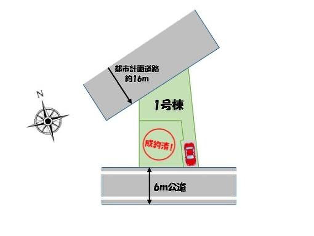 | 駐車場 | 1台 | 道路の幅員 | 道路幅:6.3m・16m、アスファルト舗装、北16m公道、 南6.37m公道 |