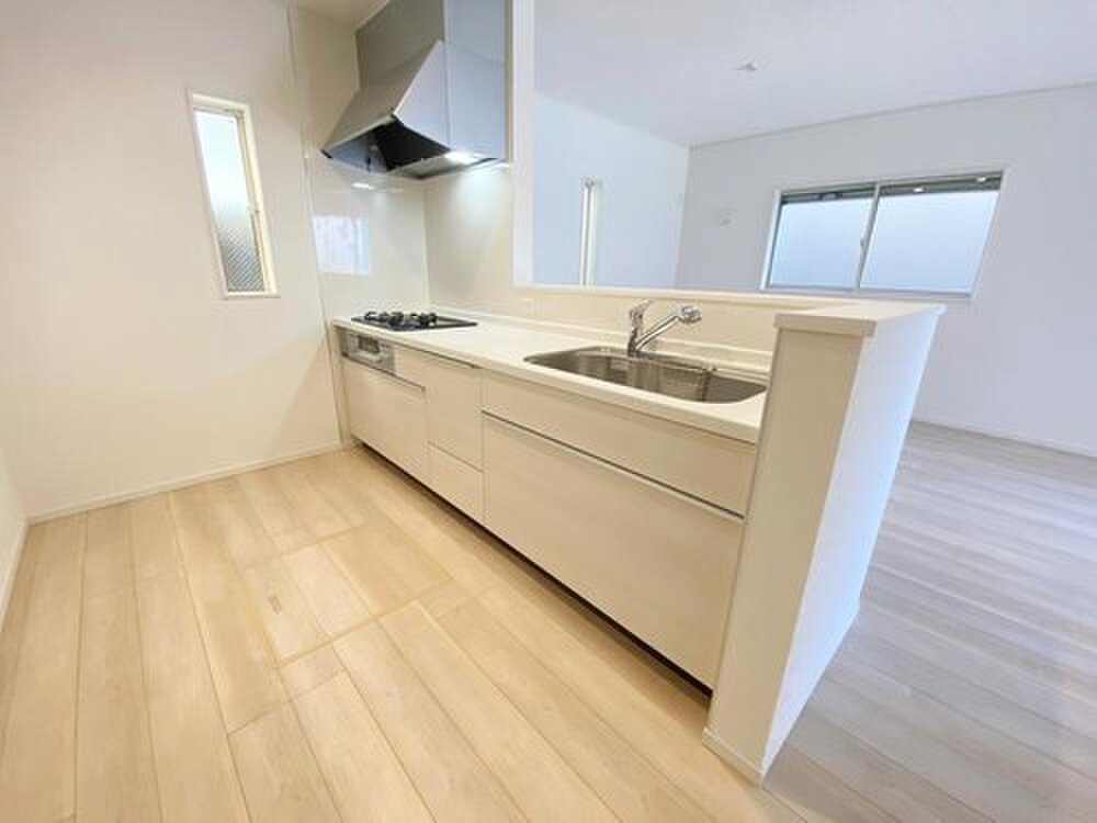 窓付きの明るく爽やかなキッチンスペース。床下収納もございますの...