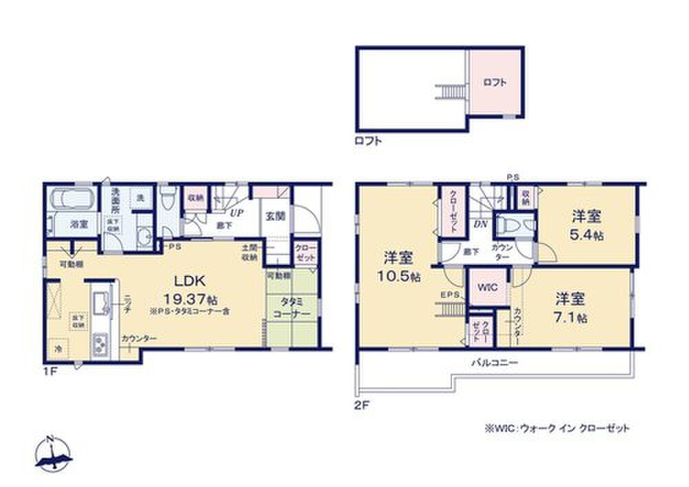 | 建物面積 | 94.39m2~99.51m2 | 土地面積 | 100.58m2・107m2 |