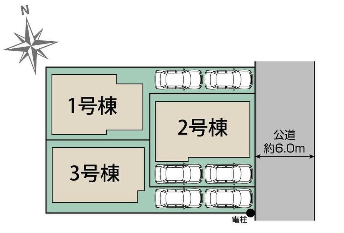 | 駐車場 | 2台(※車種による) | 道路の幅員 | 道路幅:6m、アスファルト舗装、東 6.0m 公道 |