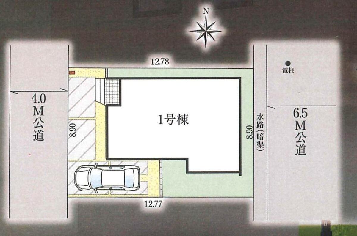 | 駐車場 | 1台 | 道路の幅員 | 道路幅:4m・6.5m、アスファルト舗装、西側4.0m公道、東側6.5m 公道 |