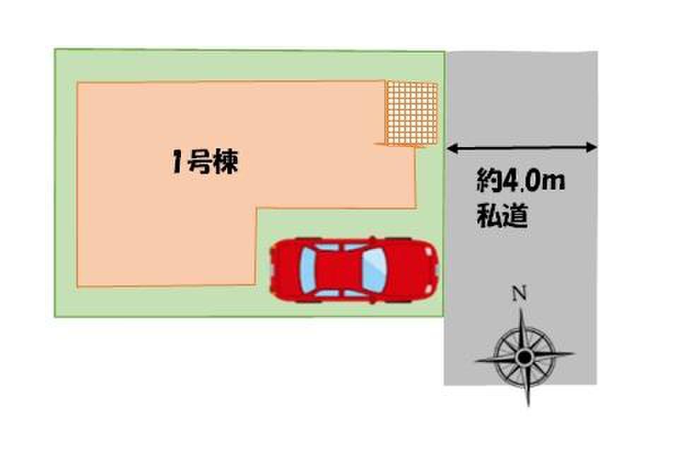 | 駐車場 | 1台 | 道路の幅員 | 道路幅:4m、アスファルト舗装、東側4.0m私道 |