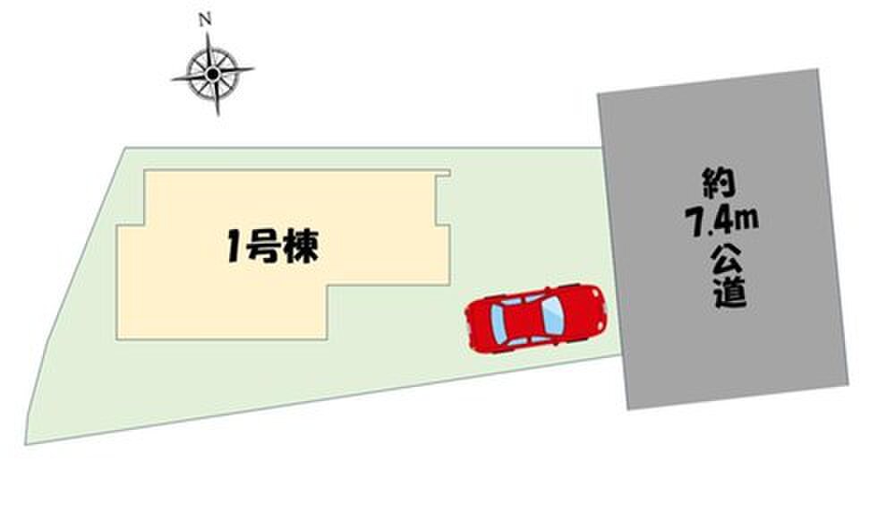 | 駐車場 | 1台 | 道路の幅員 | 道路幅:7.4m、アスファルト舗装、東:7.4m |
