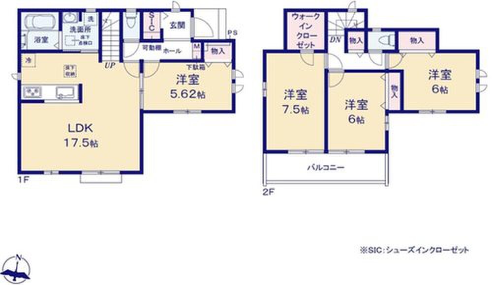 カースペース2台確保!前面道路幅10mで駐車も楽々♪ベビーカーの収納にも便利なシューズインクローク付き♪ウォークインクローゼット完備!増えがちな衣類やバッグなどを効率よく収納できます♪