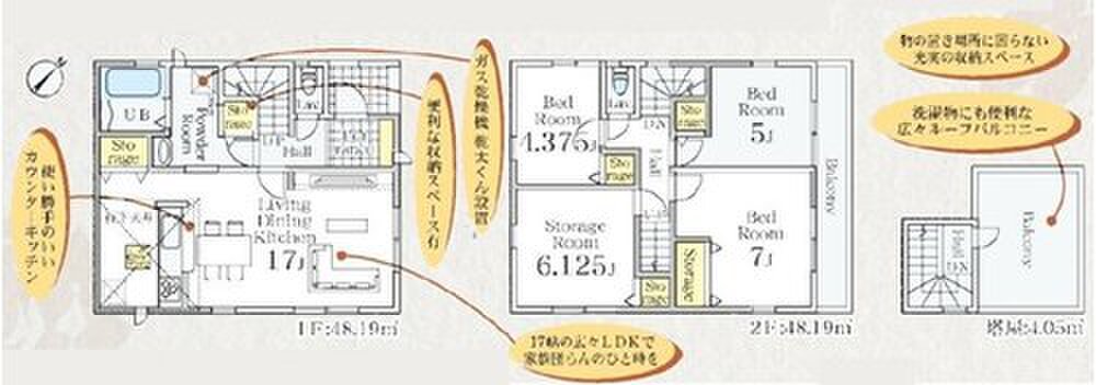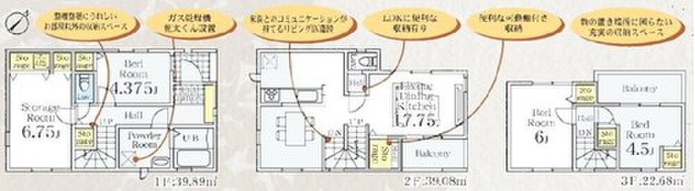 | 間取り | 3LDK+S(納戸) | 建物構造 | 1号棟・2号棟:木造階3建、3号棟:木造階2建 |