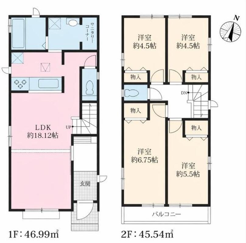 | 建物面積 | 92.53m2 | 土地面積 | 110.96m2・111.04m2 |