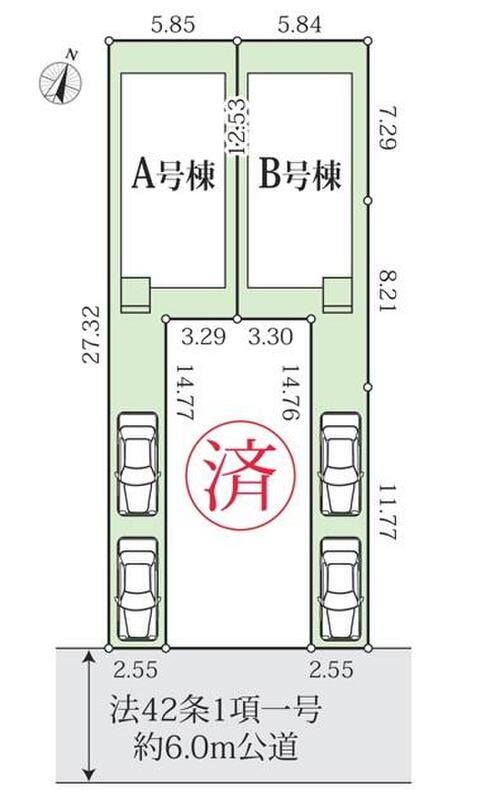 カースペース2台確保!前面道路幅6mで駐車も安心!