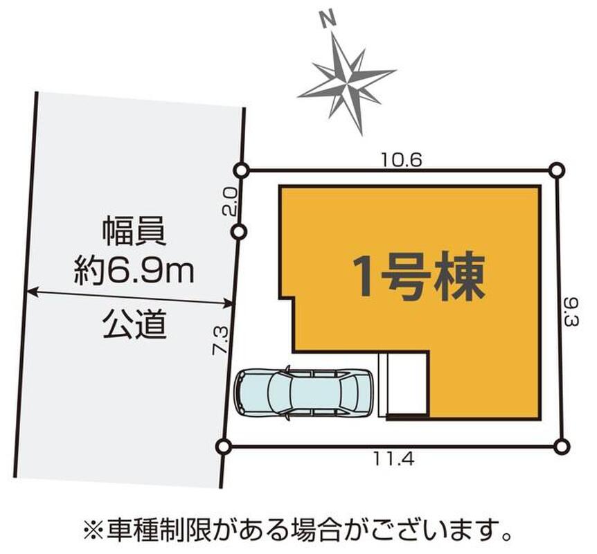 | 駐車場 | 1台(車種による) | 道路の幅員 | 道路幅:6.9m、アスファルト舗装 |