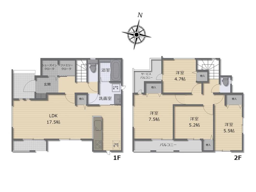シューズインクローク、ファミリークローク、リビング収納付き!