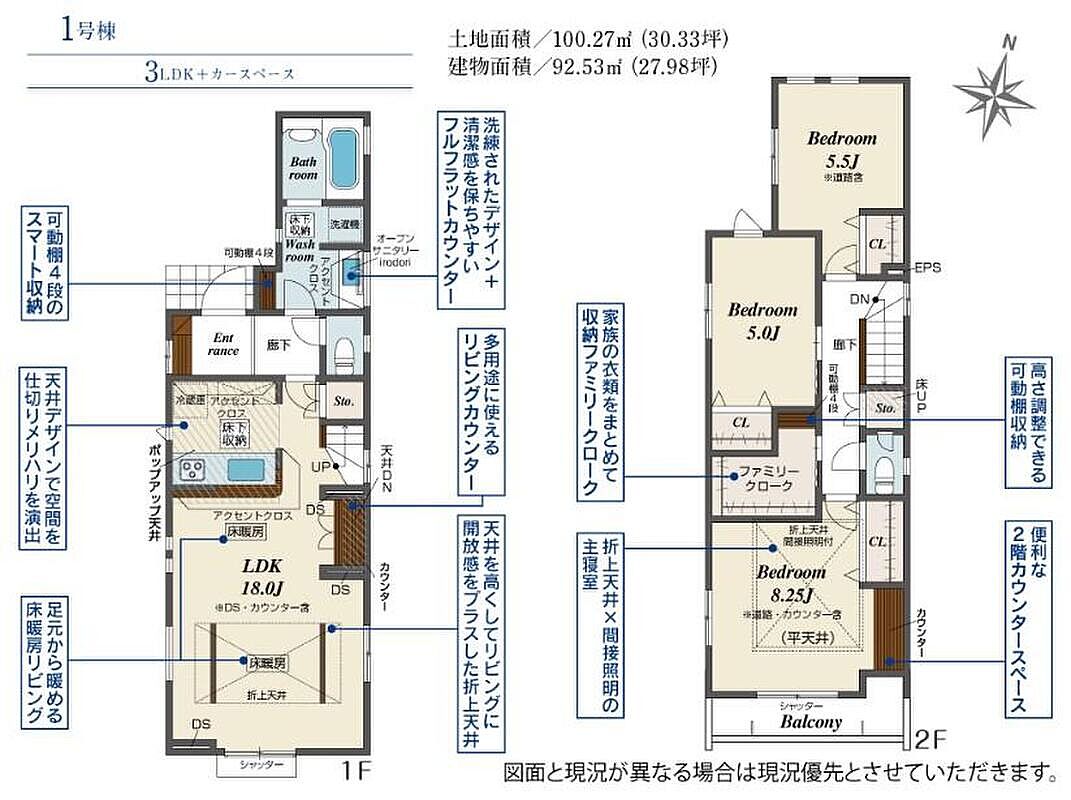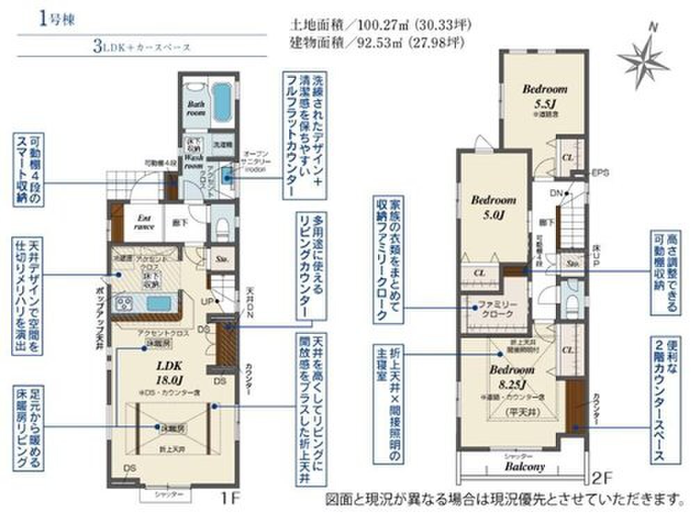 | 建物面積 | 92.53m2 | 土地面積 | 100.27m2 |