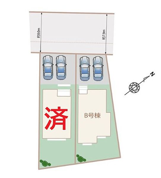 | 駐車場 | 2台 ~ 3台(A号棟(3台)※車種による・B号棟(2台)) | 道路の幅員 | 道路幅:8m、アスファルト舗装、北西側 約8.0m 公道 |
