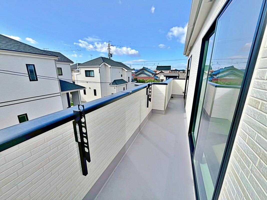 ○2部屋から出入りできて便利な南向きのワイドバルコニー