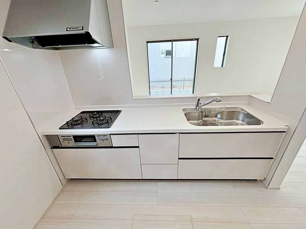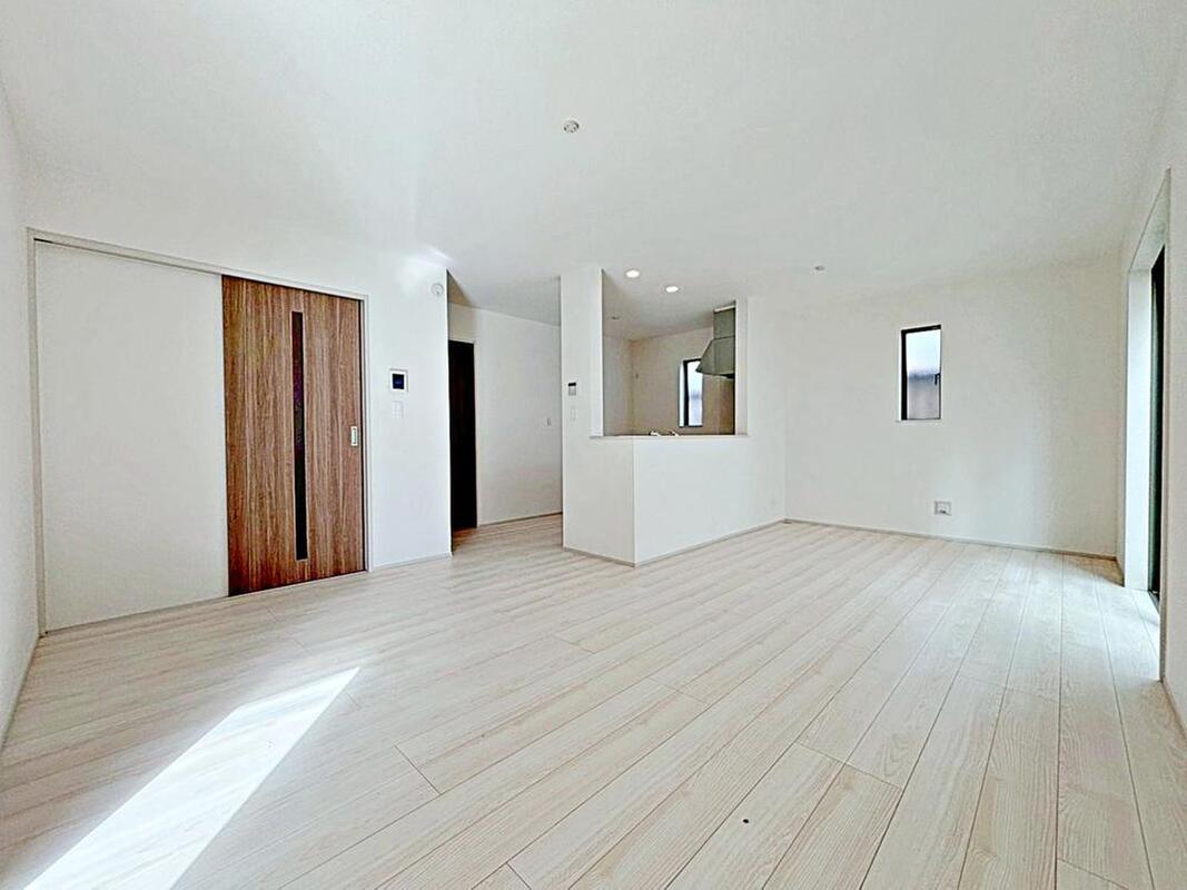 ○採光のとれた明るいリビング。対面式キッチンは、家事をしながら家族の様子が一目でわかる安心と便利設備!