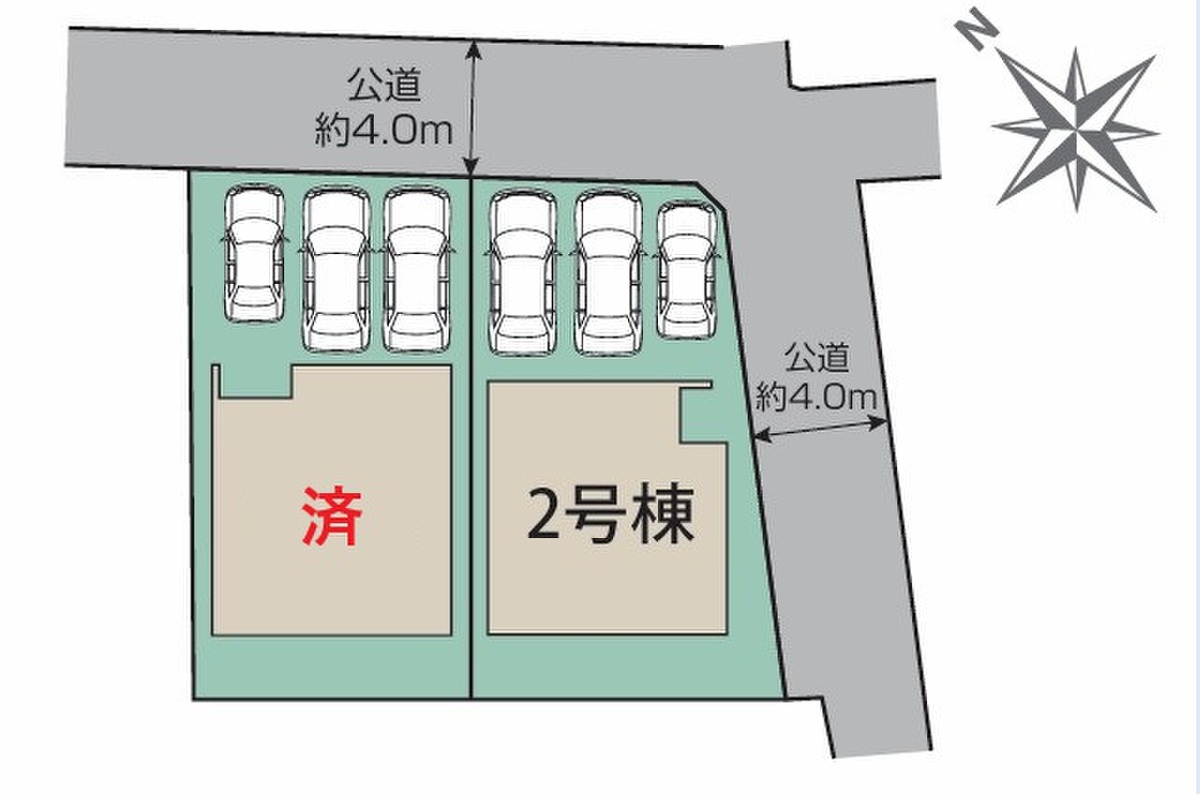 | 駐車場 | 3台 | 道路の幅員 | 道路幅:4m、アスファルト舗装、北側4.0m 公道接道 東側4.0m 公道接道 |