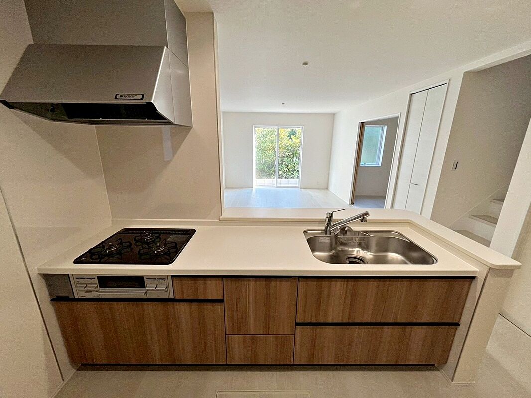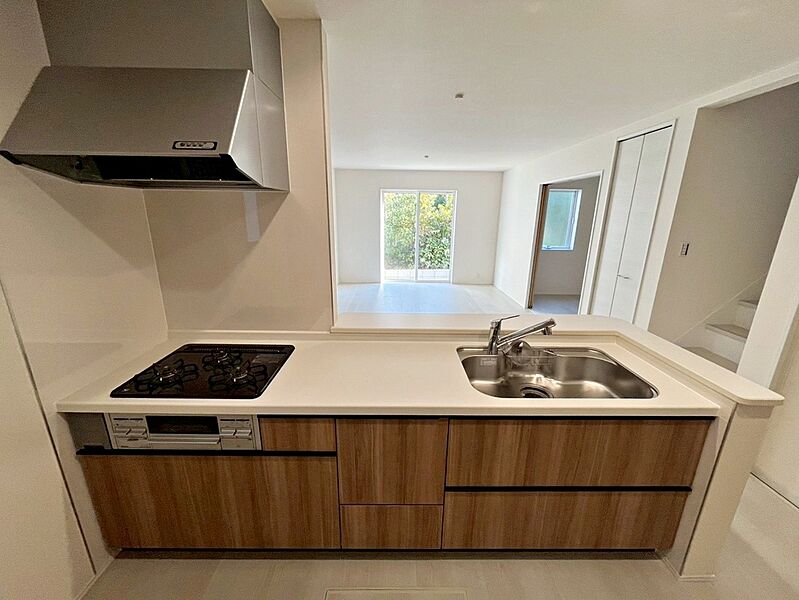 大型スライド収納付きで、すっきり片付けやすいキッチンです。