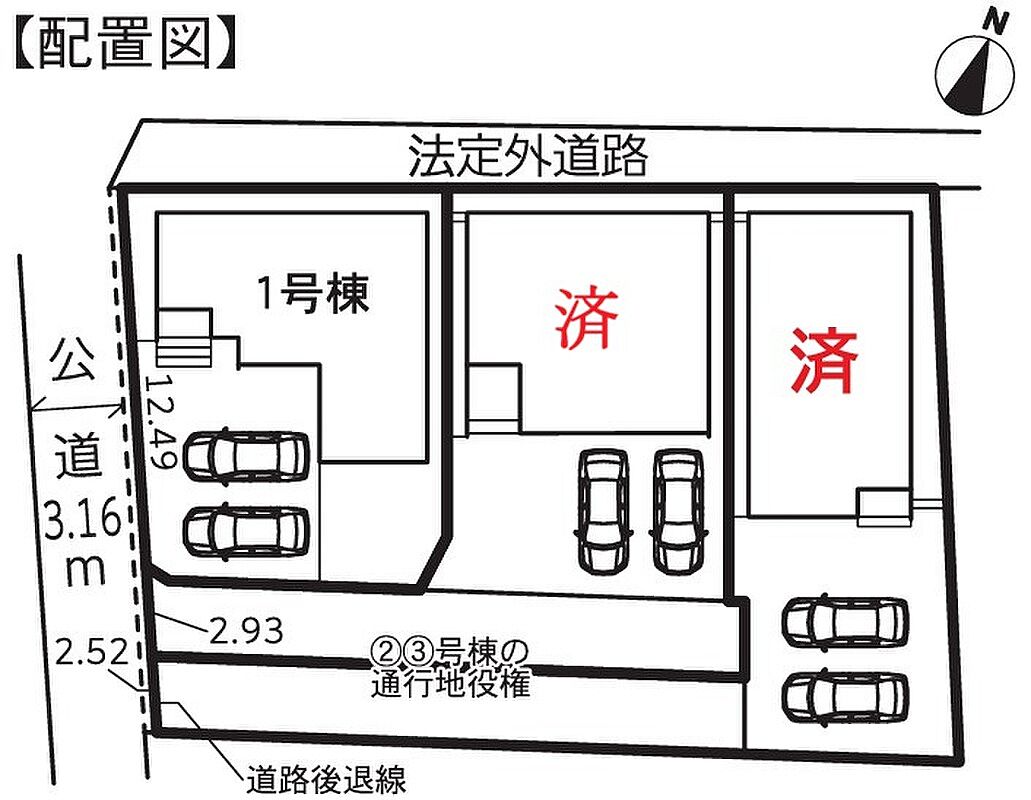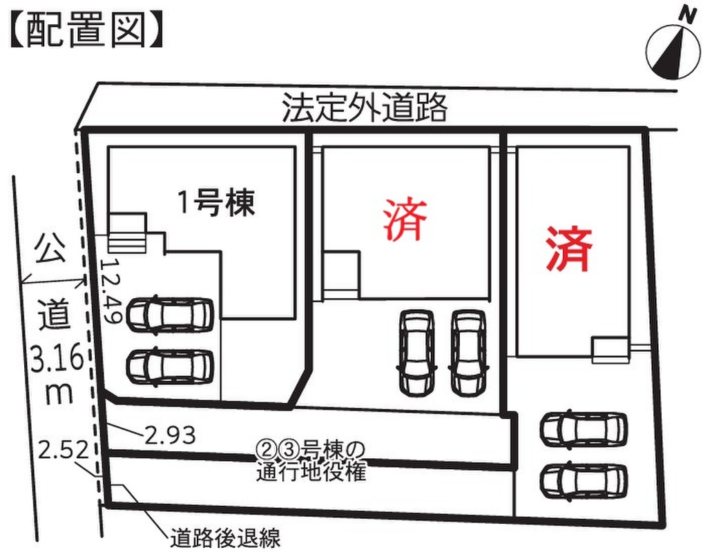 | 駐車場 | 3台(3台) | 道路の幅員 | 道路幅:3.1m~6m、アスファルト舗装 |