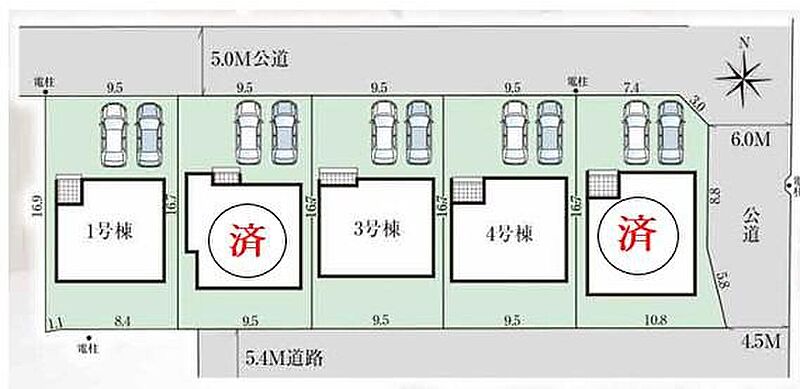 | 建物面積 | 96.46m2~109.72m2 | 土地面積 | 160m2(1・3・4号棟) |