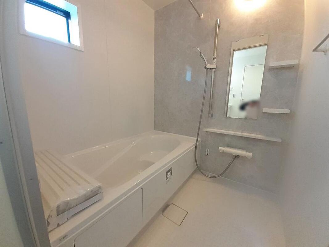 1坪タイプでゆったり過ごせるバスルーム。浴室換気乾燥機付きで湿気もこもらず清潔に!