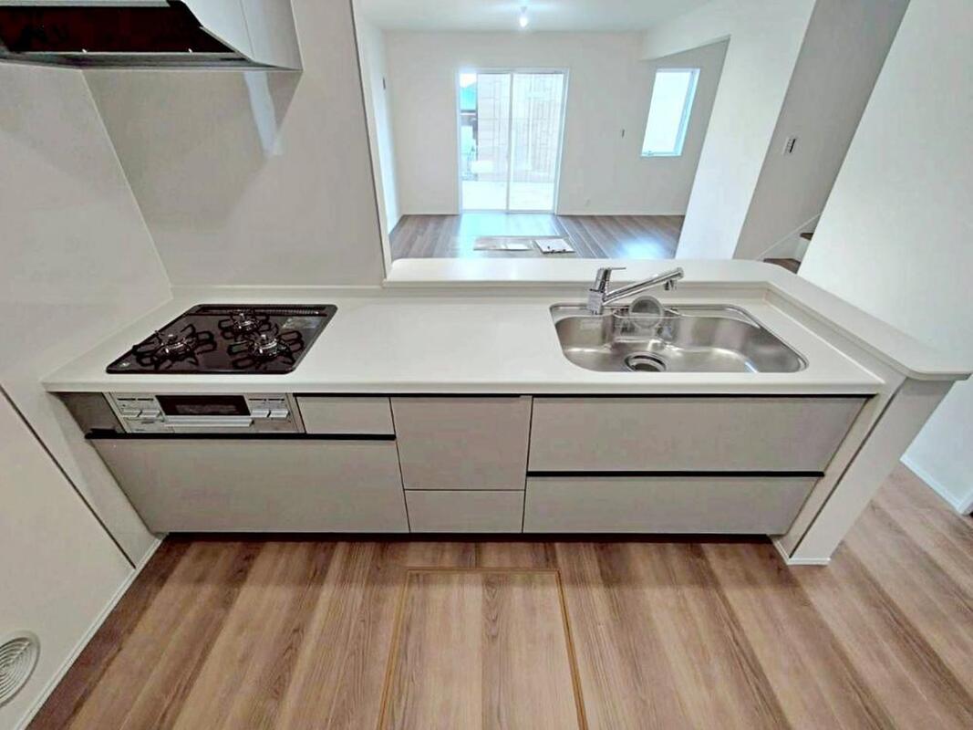 大型スライド収納付きで、すっきり片付けやすいキッチンです。