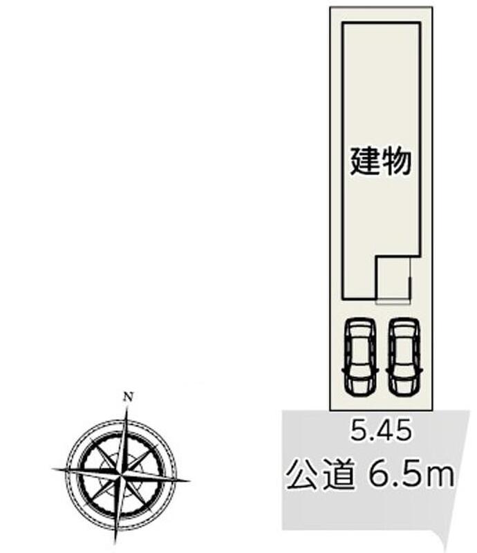 | 駐車場 | 2台 | 道路の幅員 | 道路幅:6.5m、アスファルト舗装、南側約6.5m公道 |