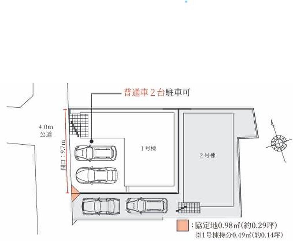 | 駐車場 | 2台 | 道路の幅員 | 道路幅:4m、アスファルト舗装、西側約4.0m公道 |