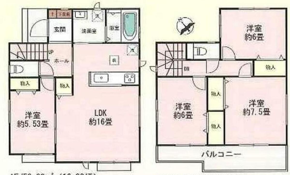 | 建物面積 | 95.24m2・98.04m2(28.80坪・29.65坪) | 土地面積 | 130.45m2・138.45m2(39.46坪・41.88坪) |