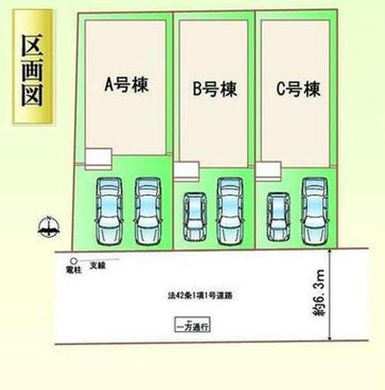 | 駐車場 | 2台(車種による) | 道路の幅員 | 道路幅:6.3m、アスファルト舗装、南側 約6.3m 公道 |