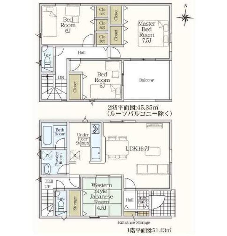 | 間取り | 4LDK | 建物構造 | 木造スレート葺き又は、アスファルトシングル葺き、ガルバリウム鋼板横葺き2階建 |