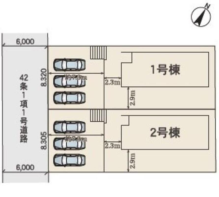 | 駐車場 | 3台 | 道路の幅員 | 道路幅:6m、アスファルト舗装、南西側 約6m 公道 |