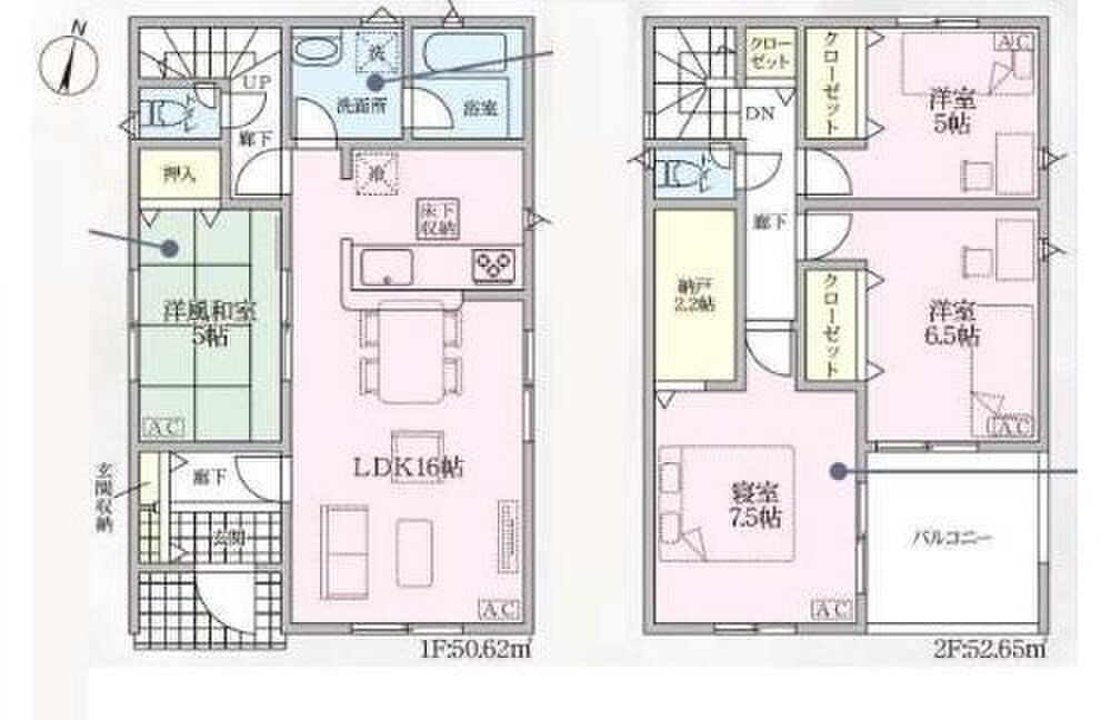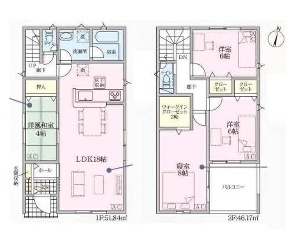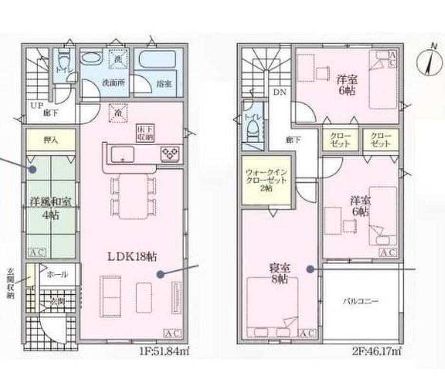 | 建物面積 | 95.98m2・98.01m2(29.03坪・29.64坪) | 土地面積 | 134.48m2・156.99m2(40.68坪・47.48坪) |