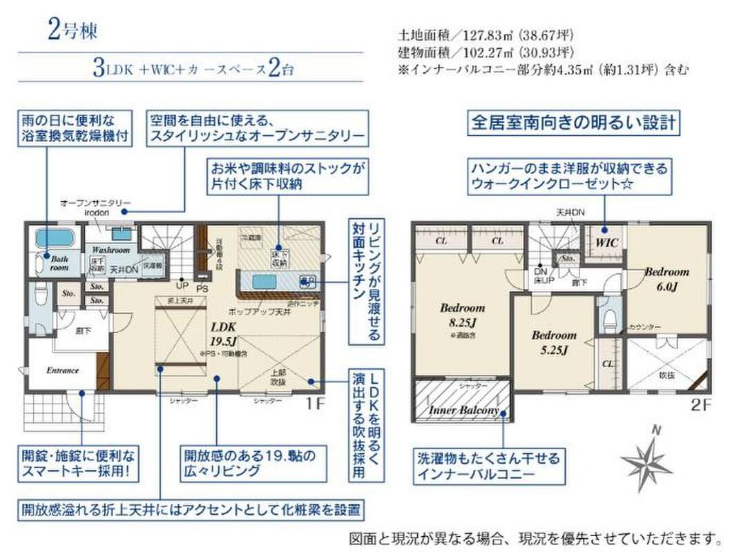 | 建物面積 | 102.27m2(30.93坪) | 土地面積 | 127.83m2(38.66坪) |