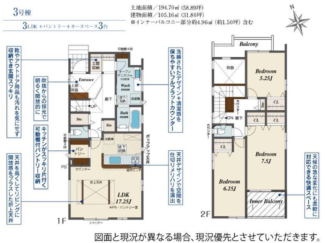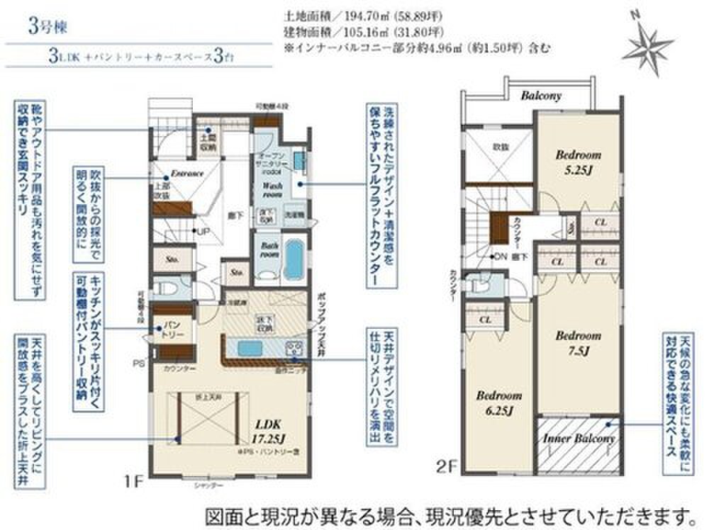 - 105.16m2・109.71m2(31.81坪・33.18坪)