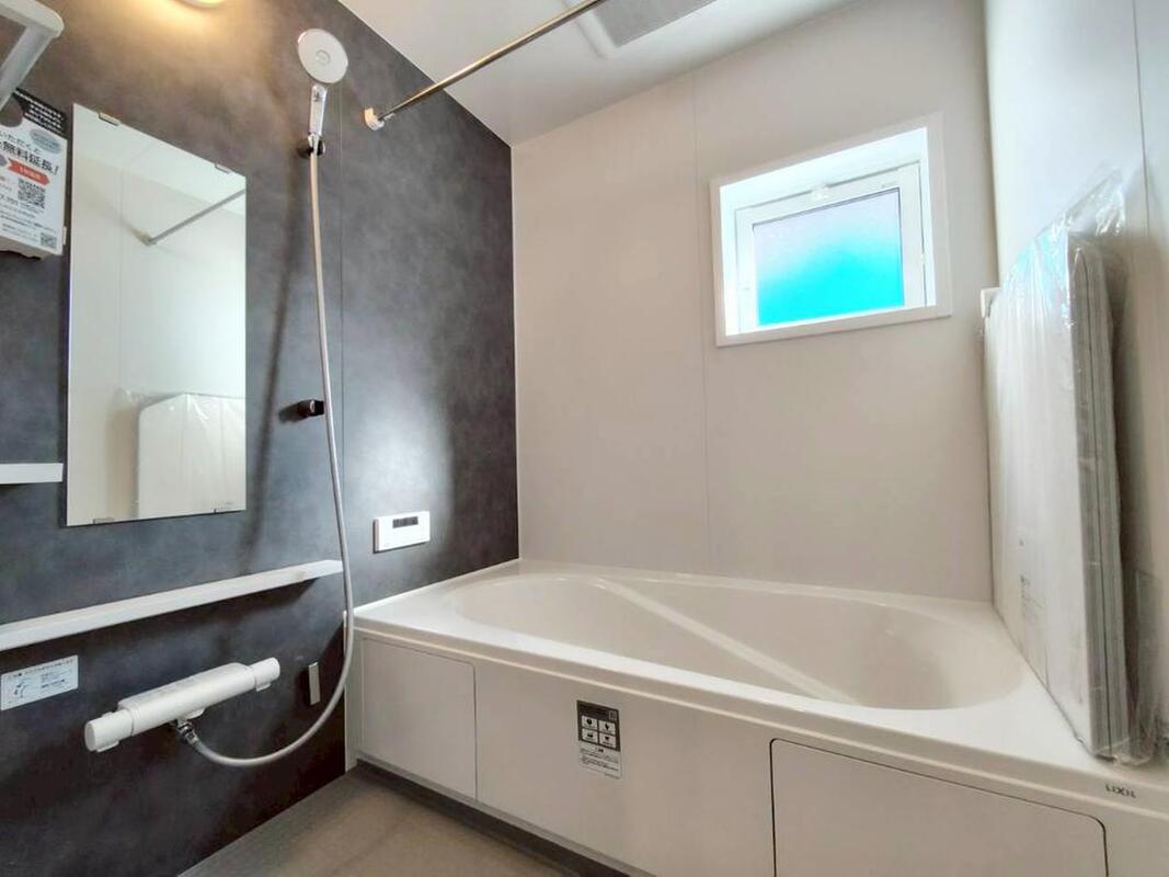 1坪タイプでゆったり過ごせるバスルーム。浴室換気乾燥機付きで湿気もこもらず清潔に!