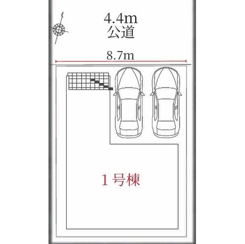| 駐車場 | 2台 | 道路の幅員 | 道路幅:4.4m、アスファルト舗装、北側 約4.4m 公道 |