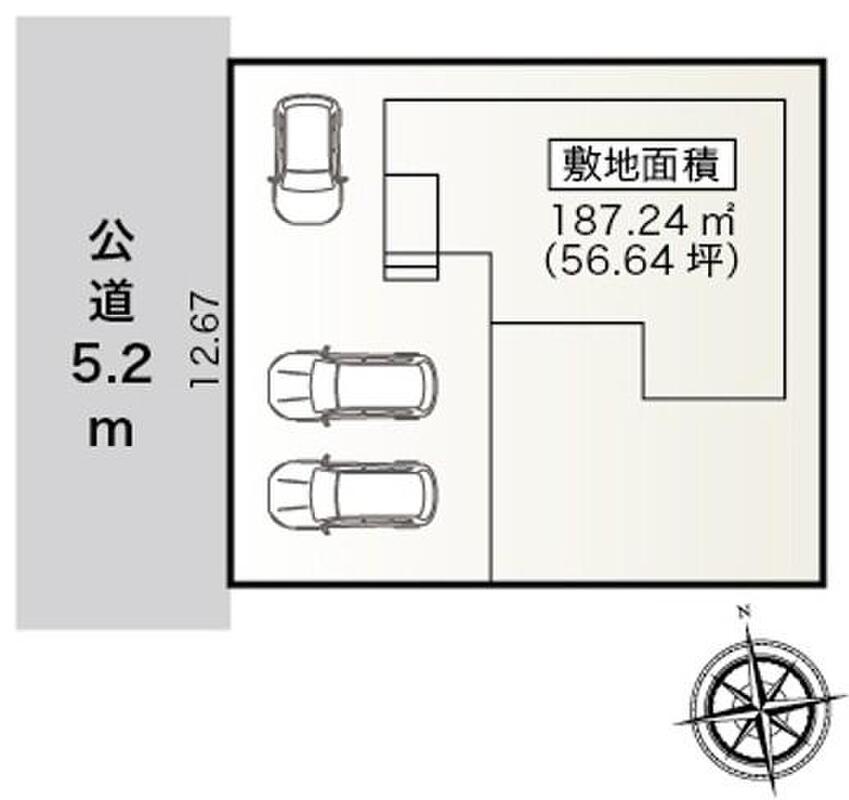 | 駐車場 | 3台 | 道路の幅員 | 道路幅:5.2m、アスファルト舗装、西側 約5.2m 公道 |